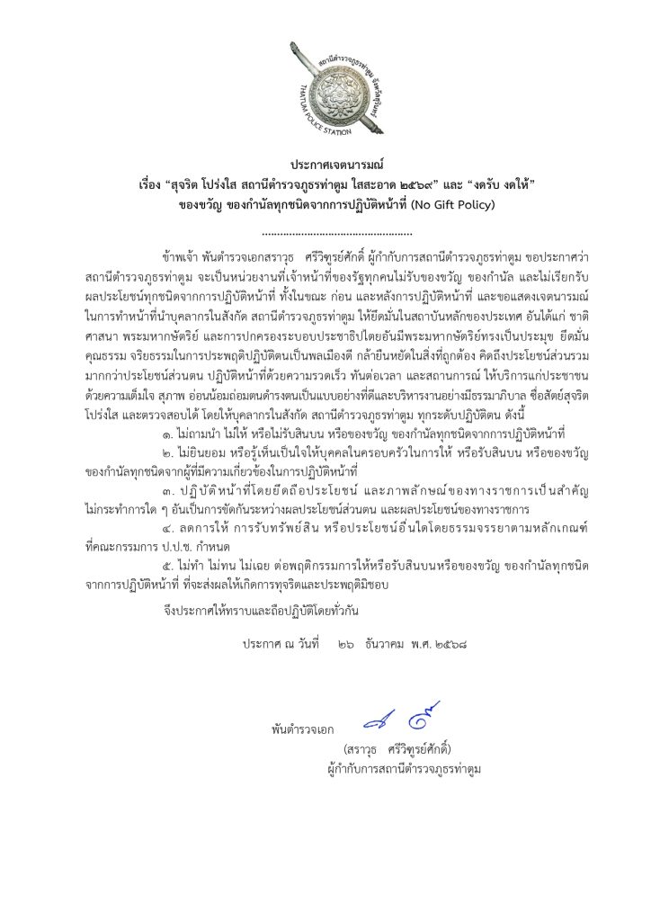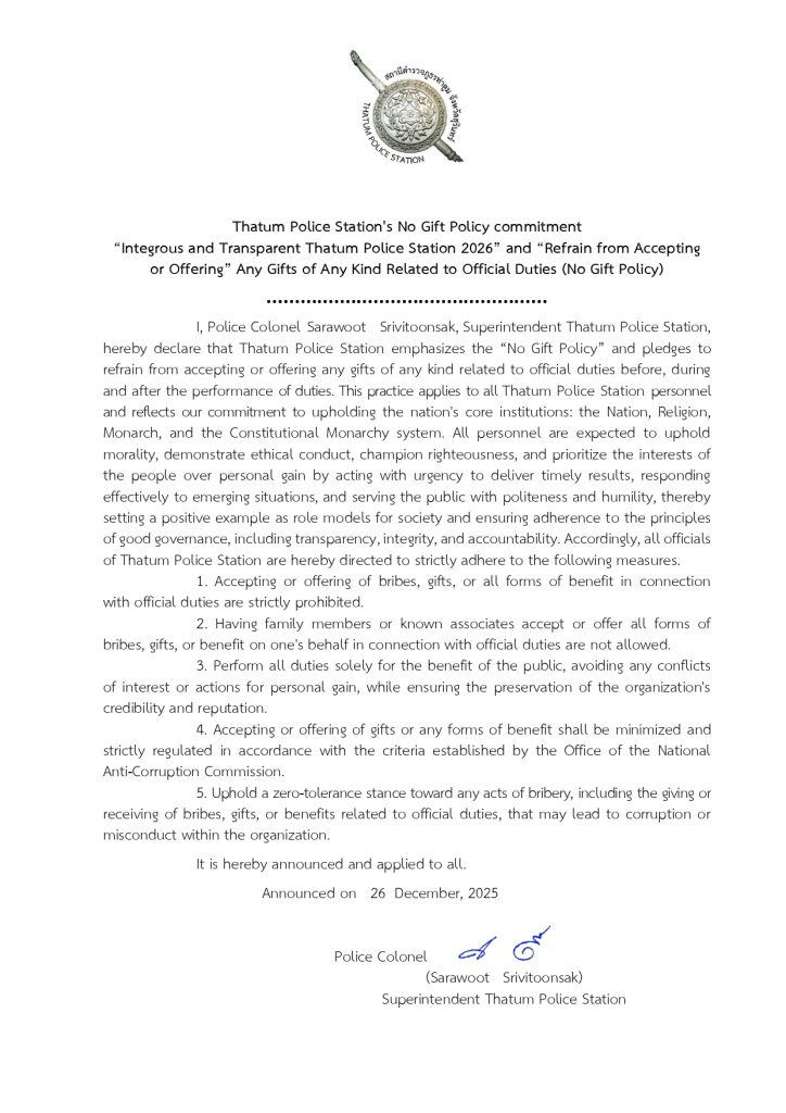 ประกาศเจตนารมณ์ ไม่รับของขวัญของกำนัล