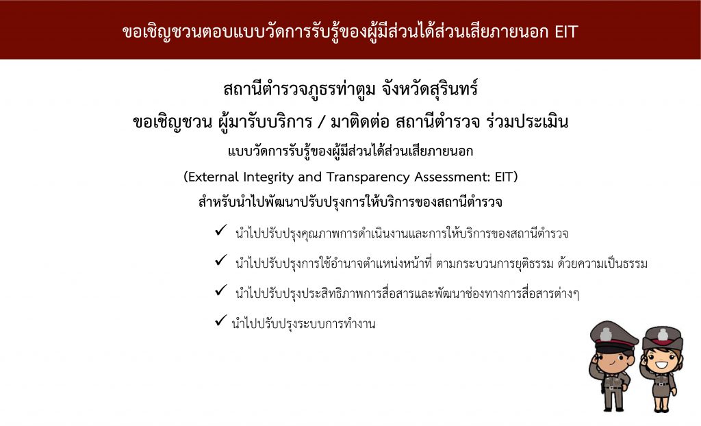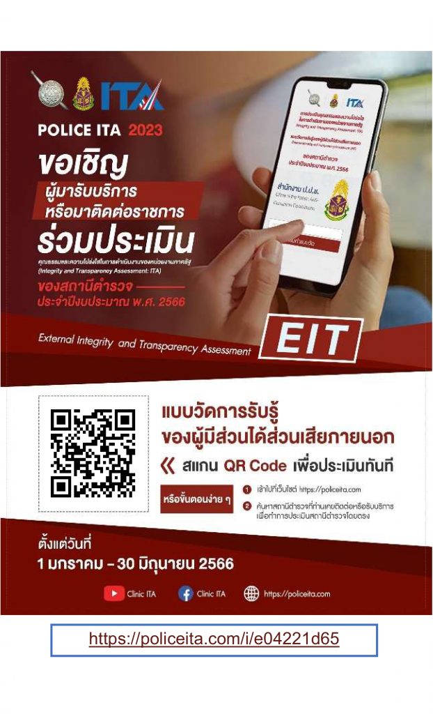 ขอเชิญชวนตอบแบบวัดการรับรู้ของผู้มีส่วนได้ส่วนเสียภายนอก EIT 27 พฤษภาคม 2023 โดย wanchai sayjarern / ประชาสัมพันธ์ ทำแบบประเมิน EIT คลิ๊ก