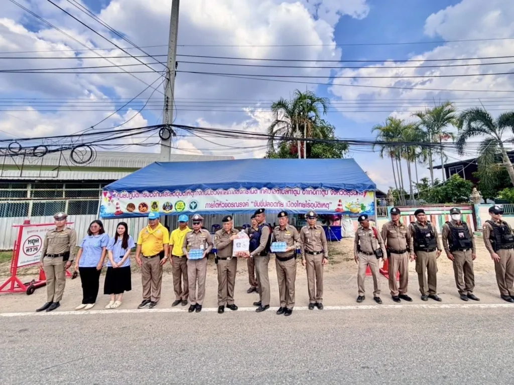 วันนี้ (16 เม.ย.68) เวลา 16.00 น. พล.ต.ต.สุคนธ์ ศรีอรุณ ผบก.ภ.จว.สุรินทร์ ออกตรวจให้กำลังใจจุดตรวจช่วงเทศกาลสงกรานต์ พ.ศ.2568 พื้นที่รับผิดชอบ สภ.ท่าตูม ณ จุดตรวจแยก กม.ศูนย์ พบ พ.ต.อ.คารม. บุญสด ผกก.สภ.ท่าตูม พ.ต.ท.ประเสริฐ จันทร์แดง รอง ผกก.ป.สภ.ท่าตูม พ.ต.ต.กษิดิศ พวงศรี รอง ผกก.สส.สภ.ท่าตูม พร้อมด้วยข้าราชการตำรวจ สภ.ท่าตูม ชุดตำรวจจิตอาสา เจ้าหน้าที่สาธารณสุข อยู่ปฏิบัติหน้าที่ พร้อมทั้งกำชับการปฏิบัติฯ ให้เป็นไปด้วยความเรียบร้อย พร้อมมอบสิ่งของ น้ำดื่ม และเครื่องดื่มชูกำลัง เพื่อเป็นขวัญกำลังใจในการปฏิบัติหน้าที่