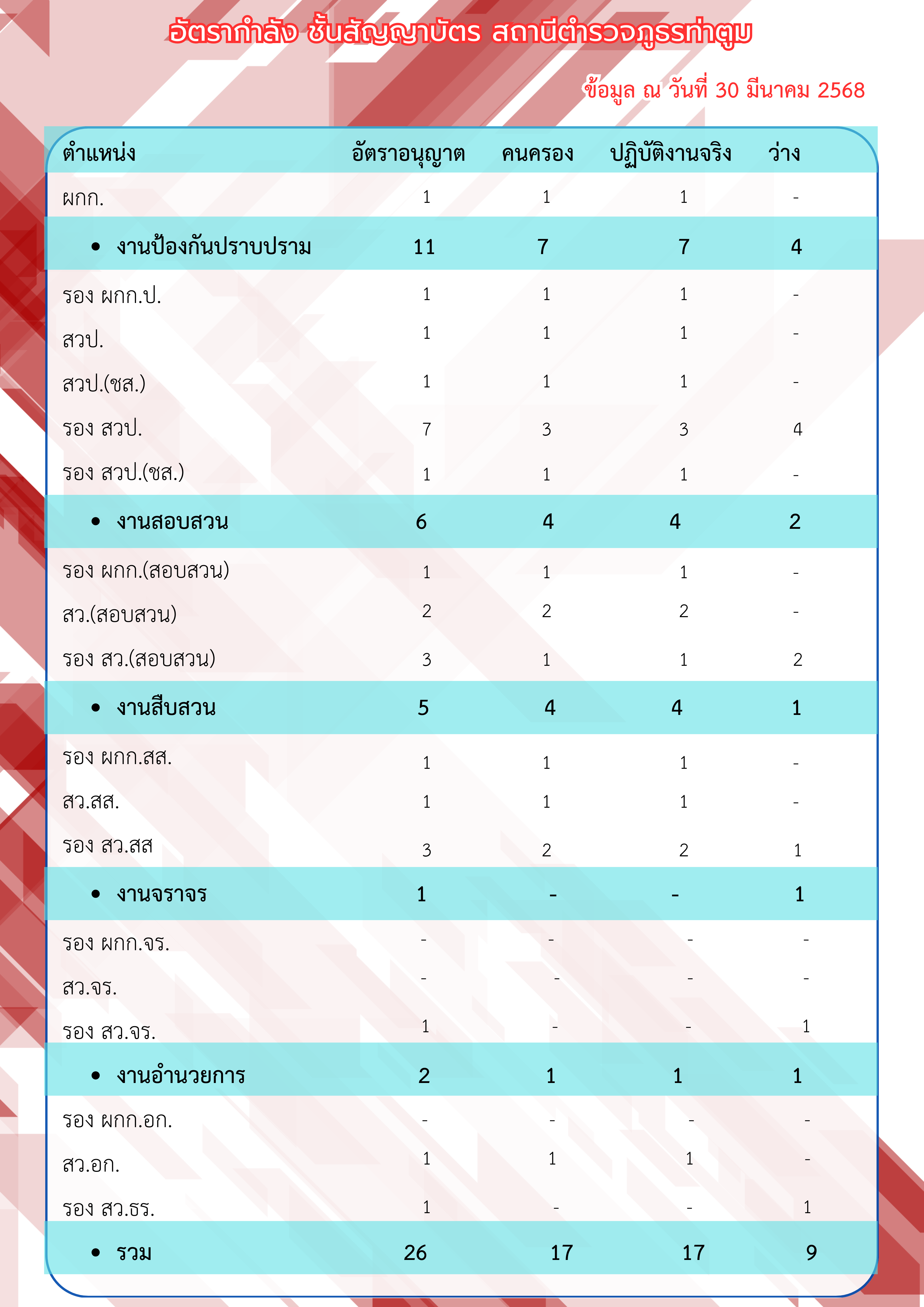 ข้อมูลอัตรากำลังพลสถานีตำรวจภูธรท่าตูม
