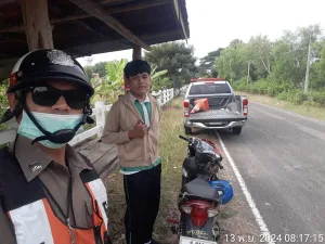 👮♂️👮♂️“จราจร สภ.ท่าตูม ให้การช่วยเหลือรถจักรยานยนต์โซ่ตก“